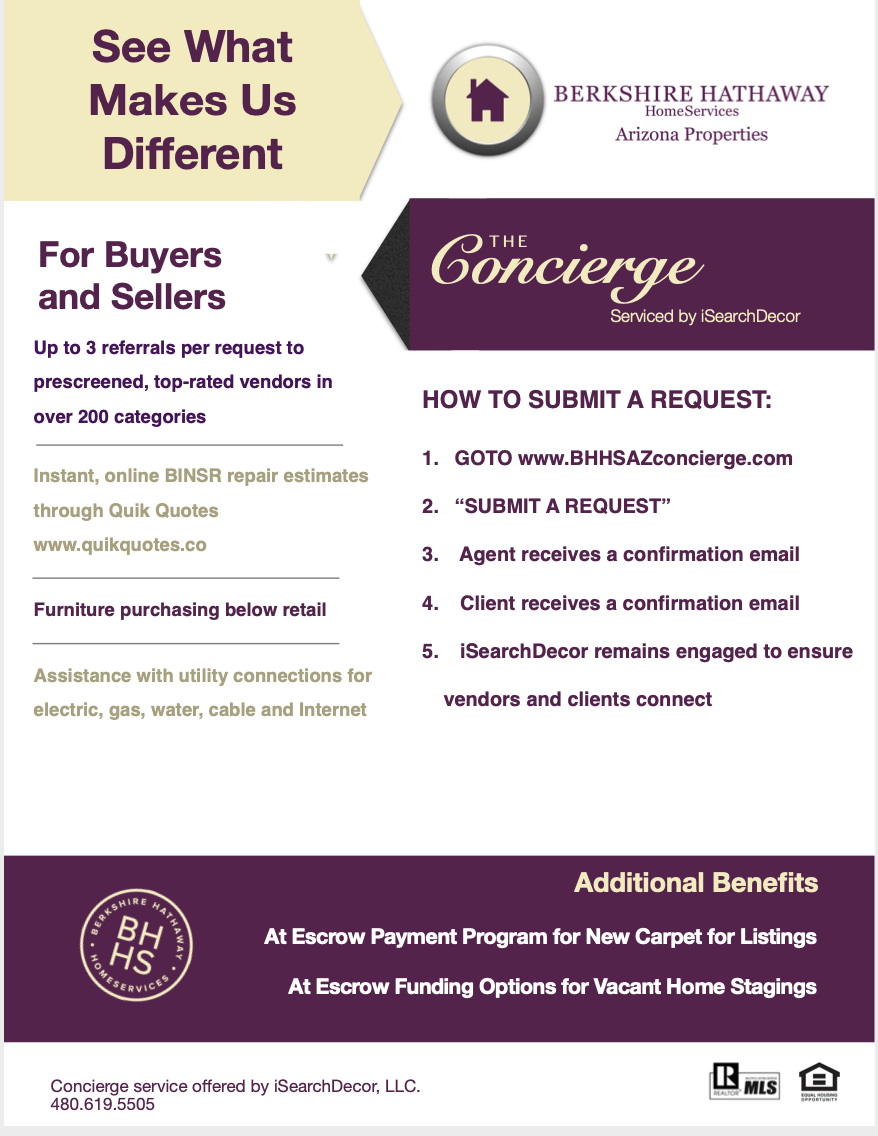 - Concierge services for buyers including vendor referrals to prescreened home improvement professionals and access to furniture at below retail prices